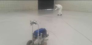 Pintamos pisos de grandes dimensiones mediante pulverización permitiendo lograr un acabado uniforme en poco tiempo